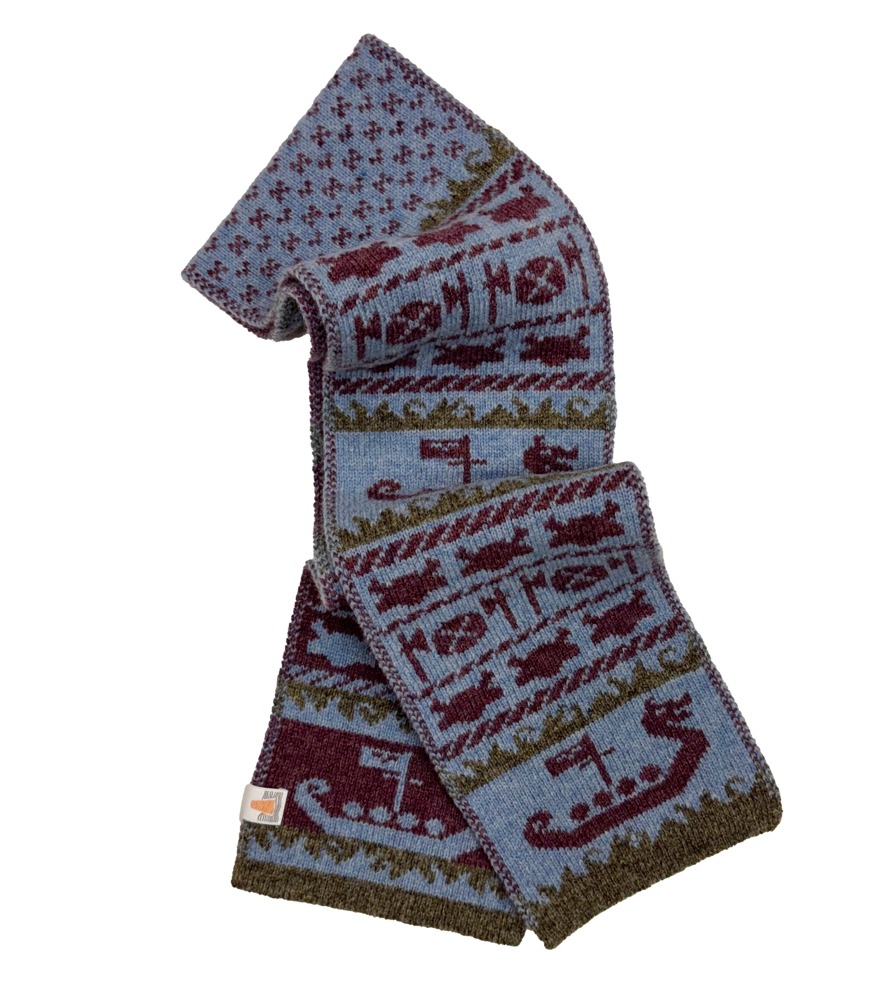 This scarf was created as a bit of fun on the theme of our fire festivals that take place here in Shetland.